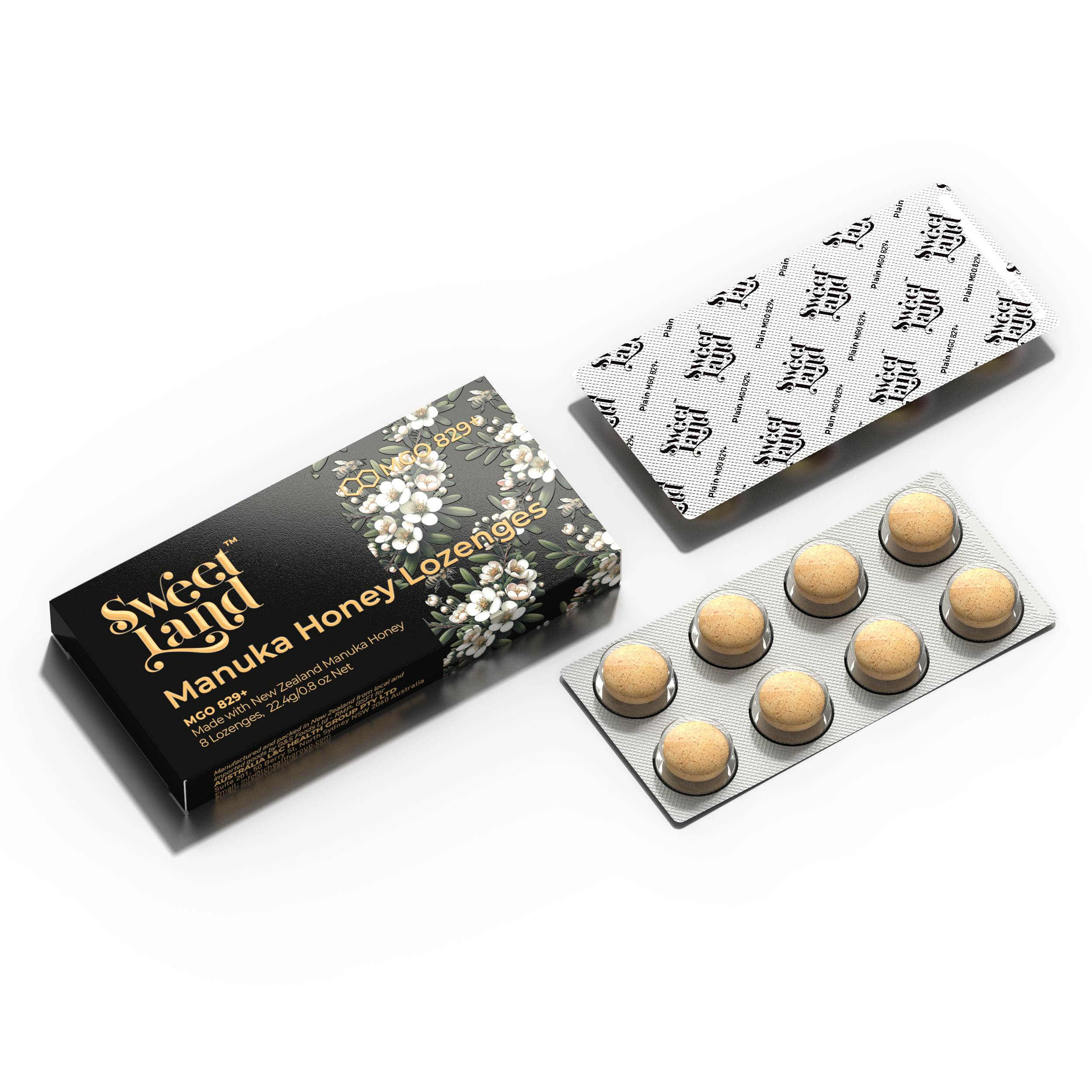 Indulge in our premium MGO829+ Manuka Honey Lozenge, boasting the highest antibacterial strength. Hospital-grade rated, it offers unmatched anti-bacterial and antiseptic properties for optimal health. Harvested by our expert beekeepers in New Zealand’s high-altitude pristine forests, this Sweet Land’s creation is your ultimate health companion.